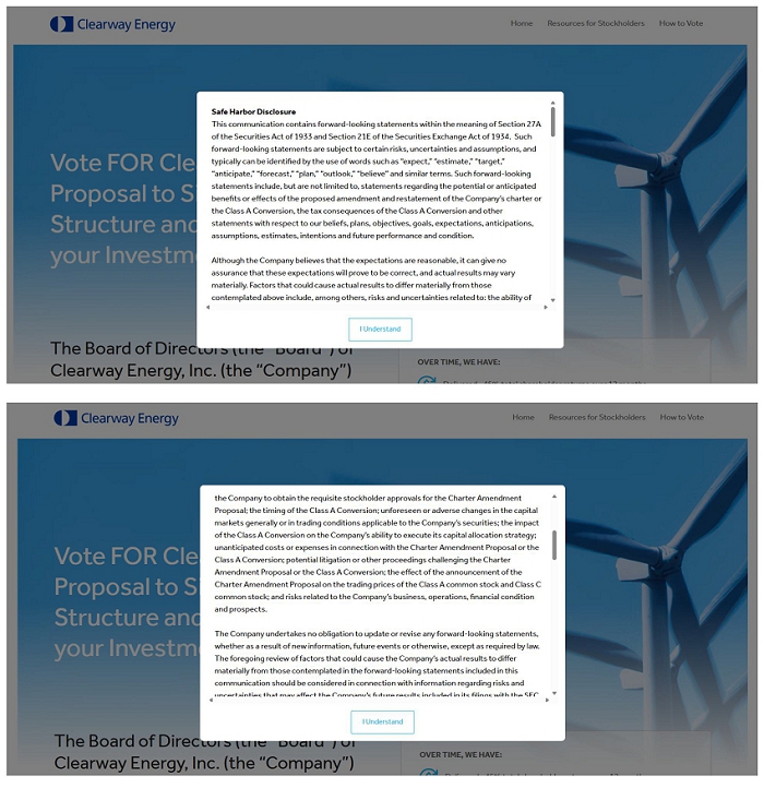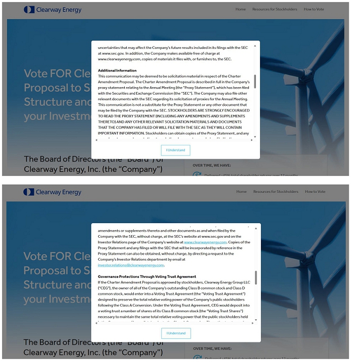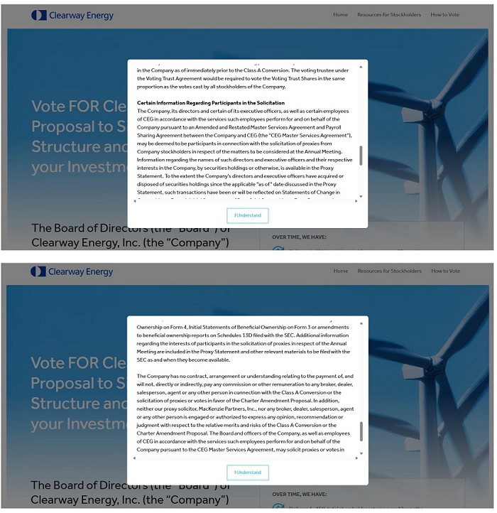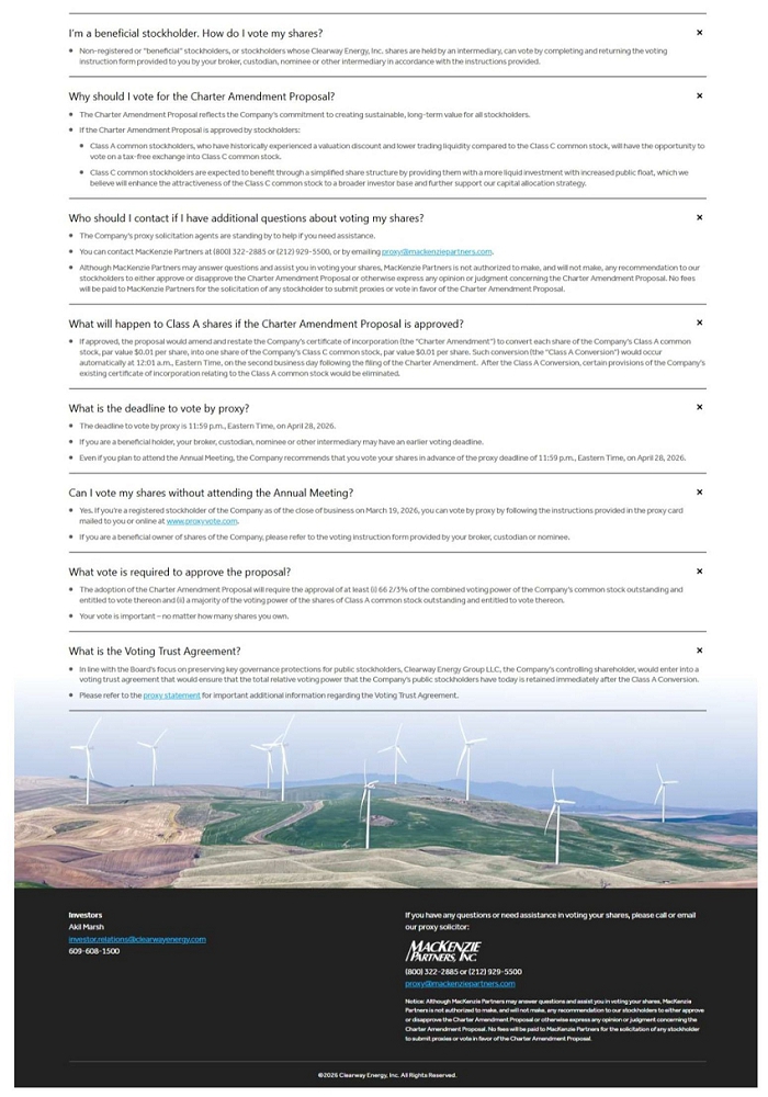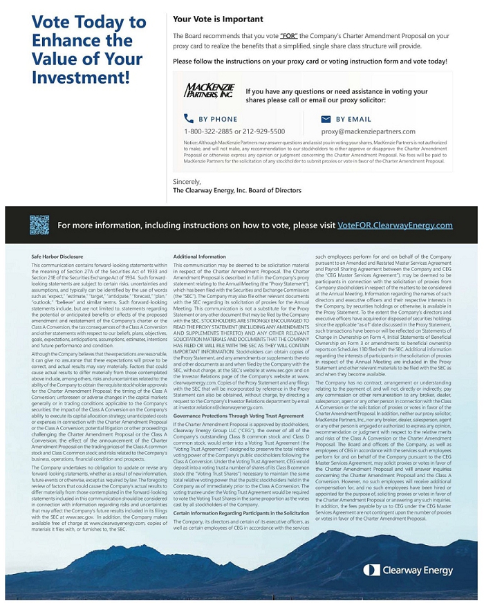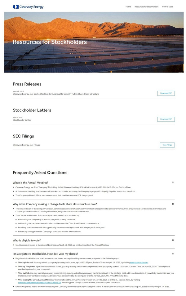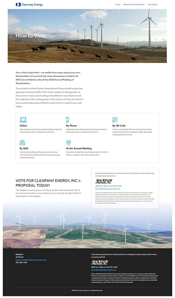 Also on March 30, 2026, the Company posted the following materials on the Investor Relations page of its website at investor.clearwayenergy.com, which page included a hyperlink to the Campaign Website.